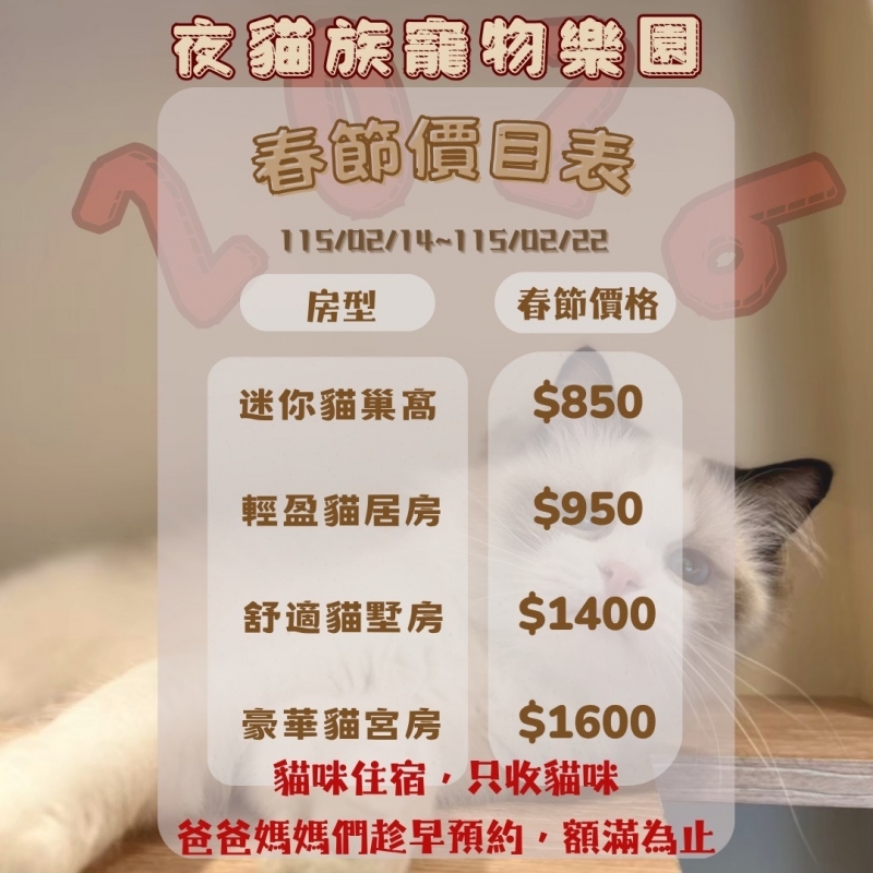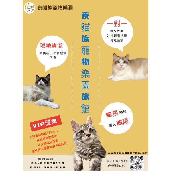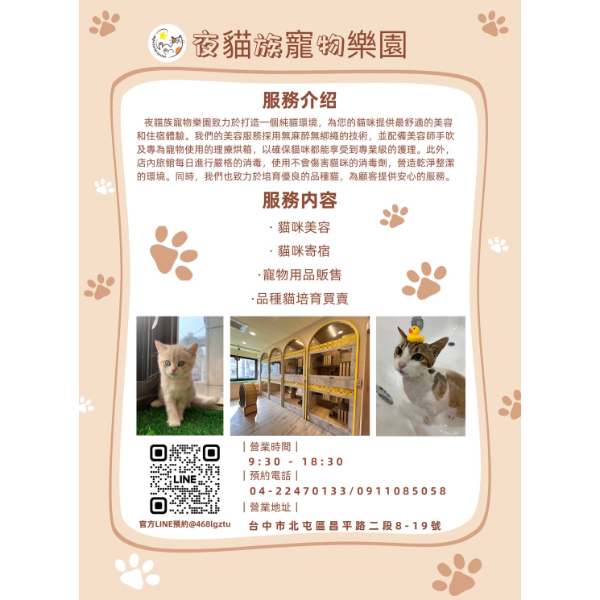 無論您是貓咪新手還是老手,夜貓族寵物樂園都將竭誠為您提供最優質的服務,